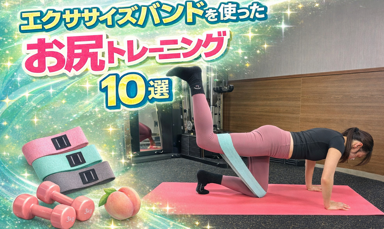 お尻を鍛える筋力トレーニングが多くありますが、今回は自宅でも鍛えやすいように「エクササイズバンド」を使用した種目を紹介いたします。
